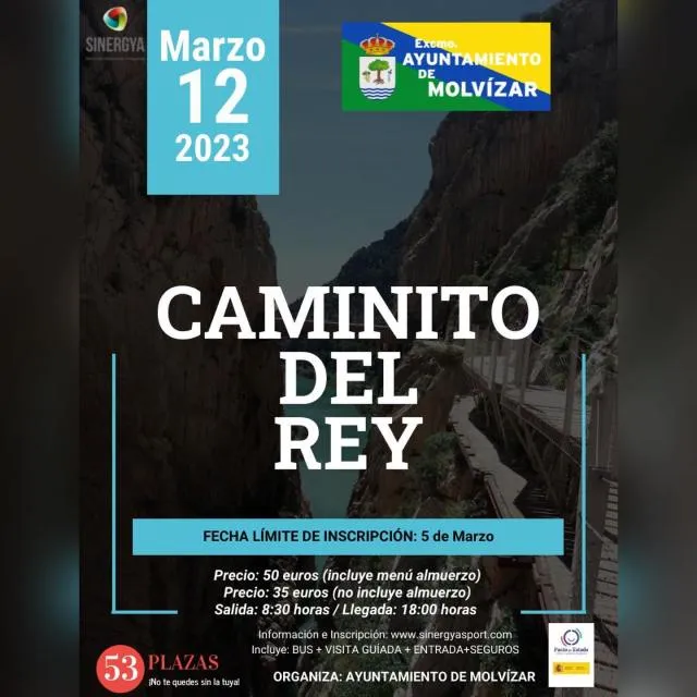 En el Ayuntamiento de Molvízar y en https://sinergyasport.com/caminito-del-rey-desde-molvizar/